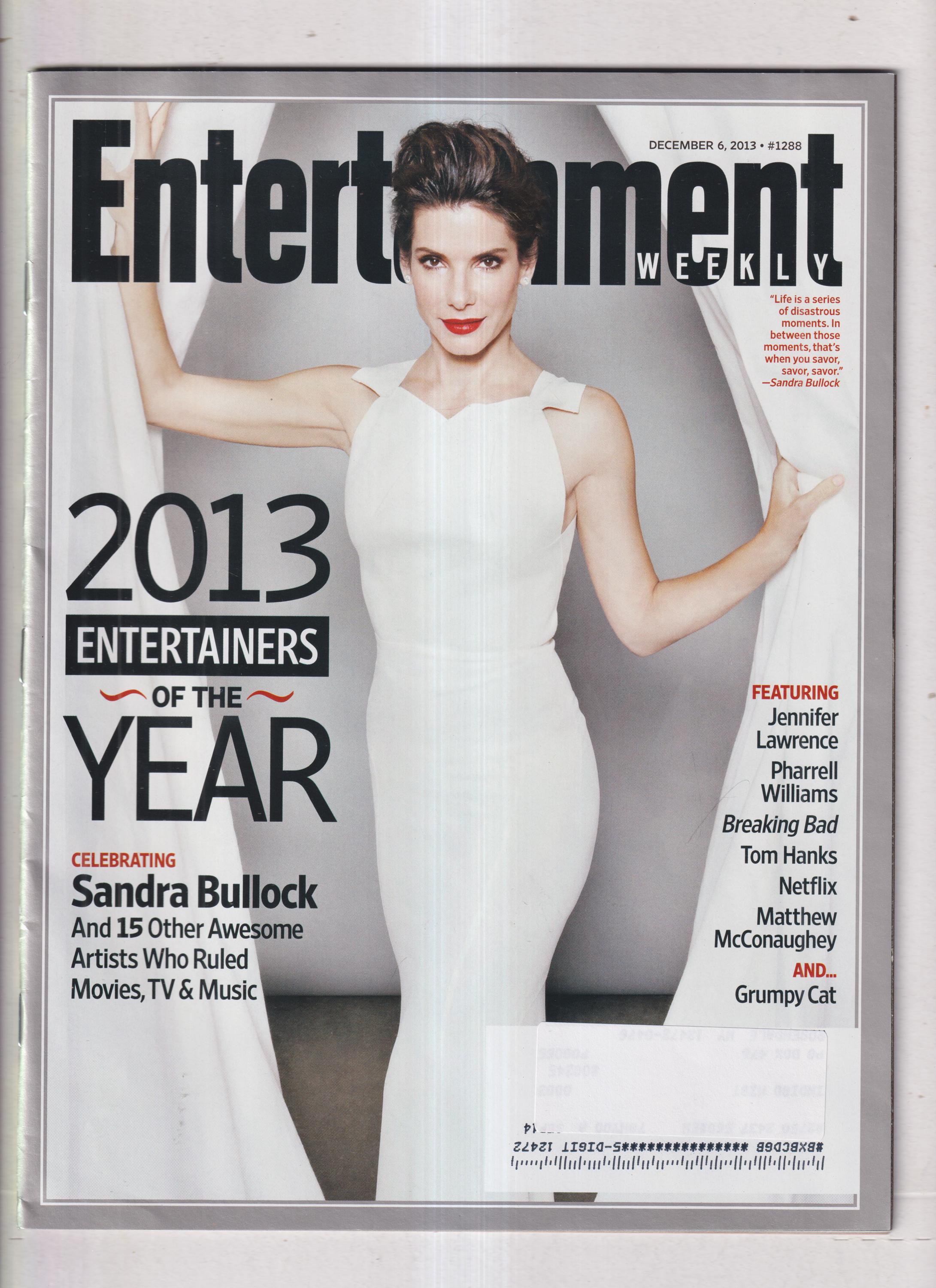 Single issue magazine that focused on pop culture, including movies, television, music, books, and other aspects of entertainment. It offered not only news and reviews but also insightful commentary, features, and interviews with industry stars. Known for its iconic cover stories, the magazine was a go-to for fans seeking both in-depth information and fun, bite-sized updates about their favorite shows, artists, or upcoming blockbusters. This issue features: Entertainment Weekly December 6, 2013 Sandra Bullock 2013 Entertainers of the Year, Jennifer Lawrence, Pharrell Williams, Tom Hanks, Netflix, Breaking Bad, Grumpy Cat, Matthew McConaughey, and more.