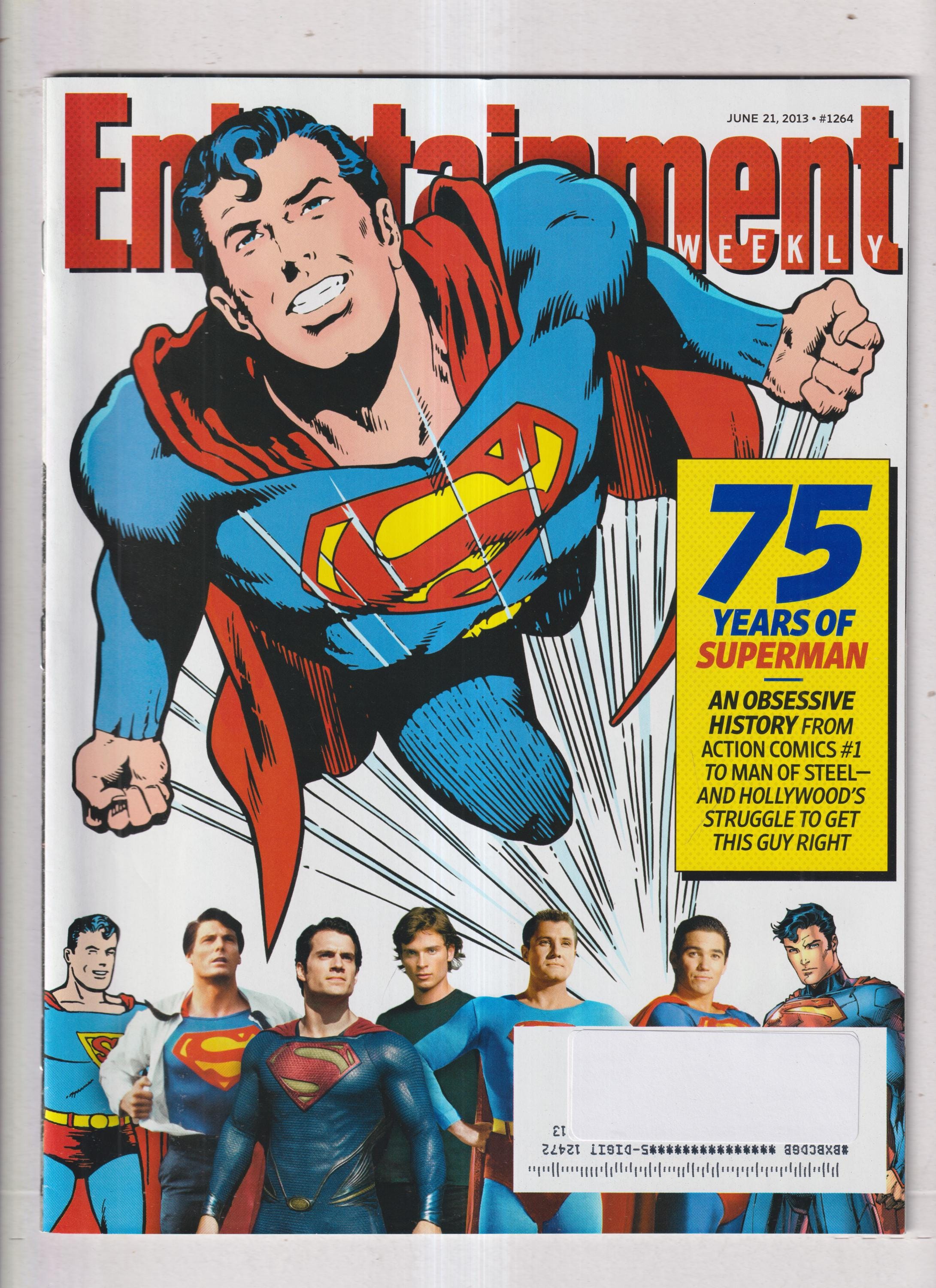 Single issue magazine that focused on pop culture, including movies, television, music, books, and other aspects of entertainment. It offered not only news and reviews but also insightful commentary, features, and interviews with industry stars. Known for its iconic cover stories, the magazine was a go-to for fans seeking both in-depth information and fun, bite-sized updates about their favorite shows, artists, or upcoming blockbusters. This issue features: Entertainment Weekly June 21, 2013 75 Years of Superman - An Obsessive History and more.